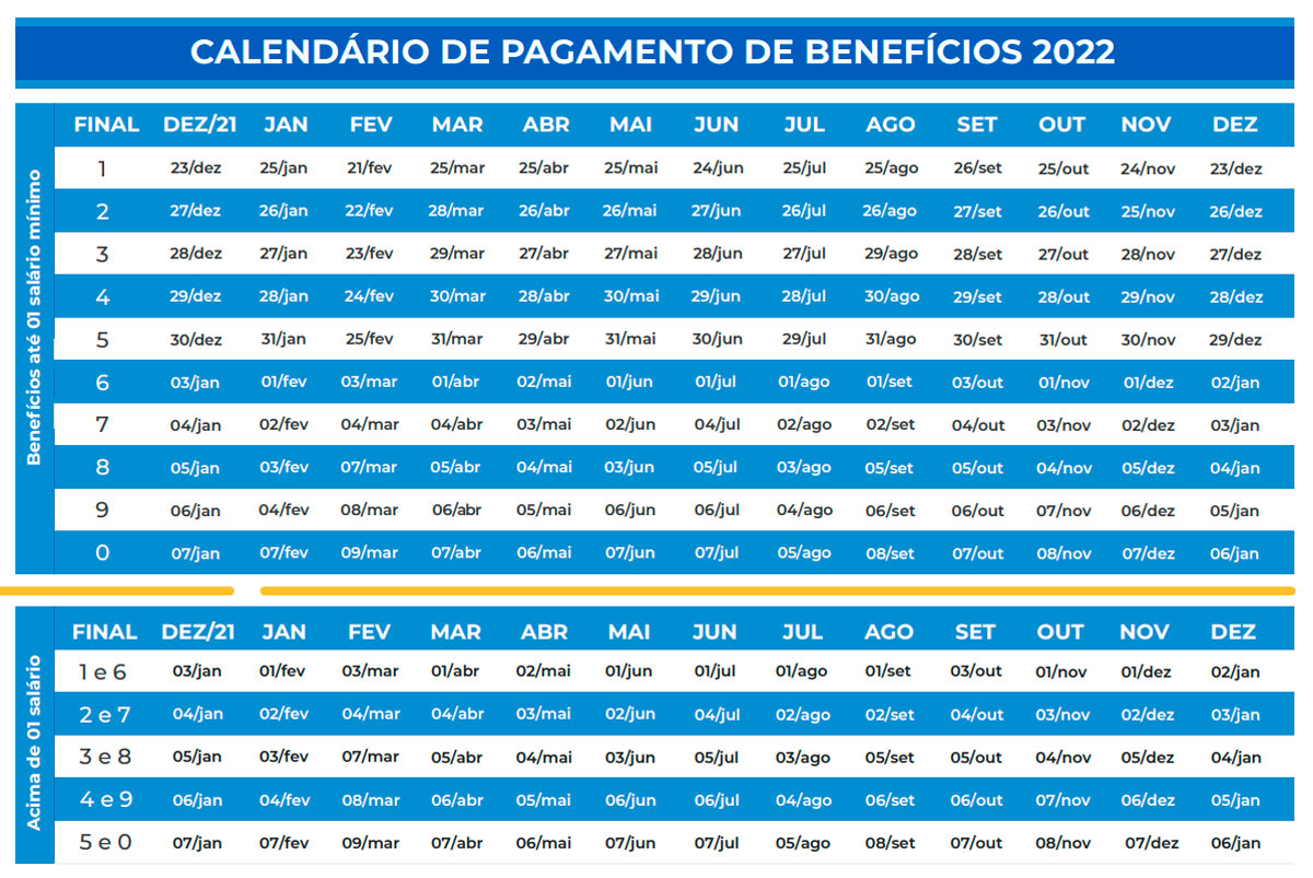 O Instituto Nacional de Seguridade Social (INSS) divulgou a escala de pagamento dos beneficiários para este ano de 2022. Alguns dos pagamentos já foram feitos no fim do ano passado.