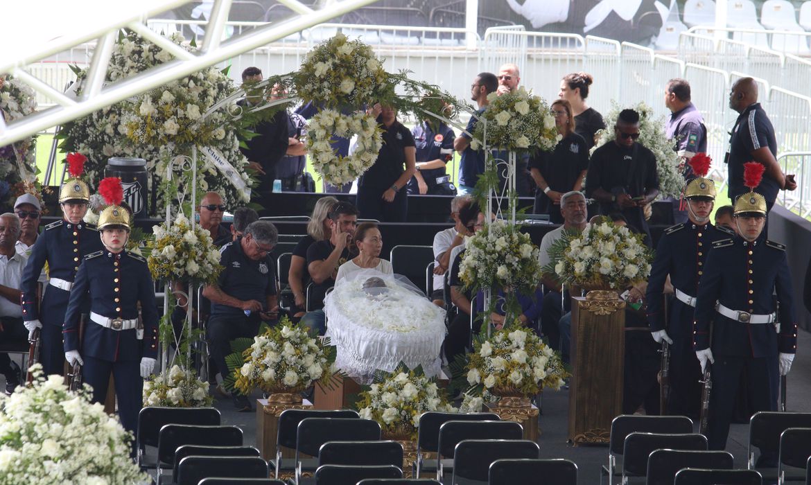 O velório começou às 10h dessa segunda-feira (2), no Estádio Urbano Caldeira, mais conhecido como Vila Belmiro, em Santos-SP. Pelé morreu na última quinta-feira (29), aos 82 anos, em decorrência de um câncer, no Hospital Albert Einstein, em São Paulo.