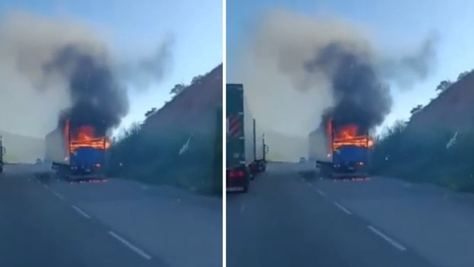 Motorista escapou ileso após incêndio atingir o reboque do veículo na manhã desta quarta-feira (19)