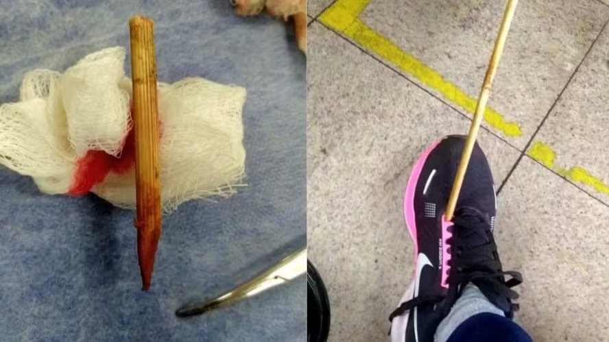 A flecha, que atravessou o tênis e perfurou o pé da mulher, obrigou a vítima a buscar atendimento médico imediato no Hospital João XXIII