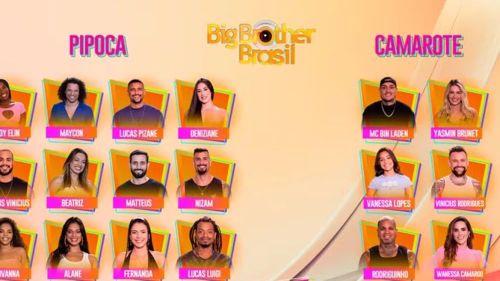 Perfil dos Participantes Entre os participantes anunciados estão Leidy Elin, uma estudante de Direito e operadora de caixa; MC Bin Laden, cantor de funk paulista; Maycon Cosmer, um cozinheiro escolar e jornalista; Yasmin Brunet, modelo; Deniziane, fisioterapeuta e mãe; Lucas Pizane, cantor e estudante de Produção Cultural; Beatriz, vendedora e modelo; Vanessa Lopes, tiktoker; Mattheus, estudante de Engenharia Agrícola; Nizan, que trabalhou em cruzeiros internacionais; Giovanna, assistente social; Alane, bailarina e modelo; Vinícius Rodrigues, atleta paralímpico; Rodriguinho, cantor e produtor; Fernanda, confeiteira e designer de moda; Wanessa Camargo, cantora; e Lucas Luigi, trabalhador da Baixada Fluminense.