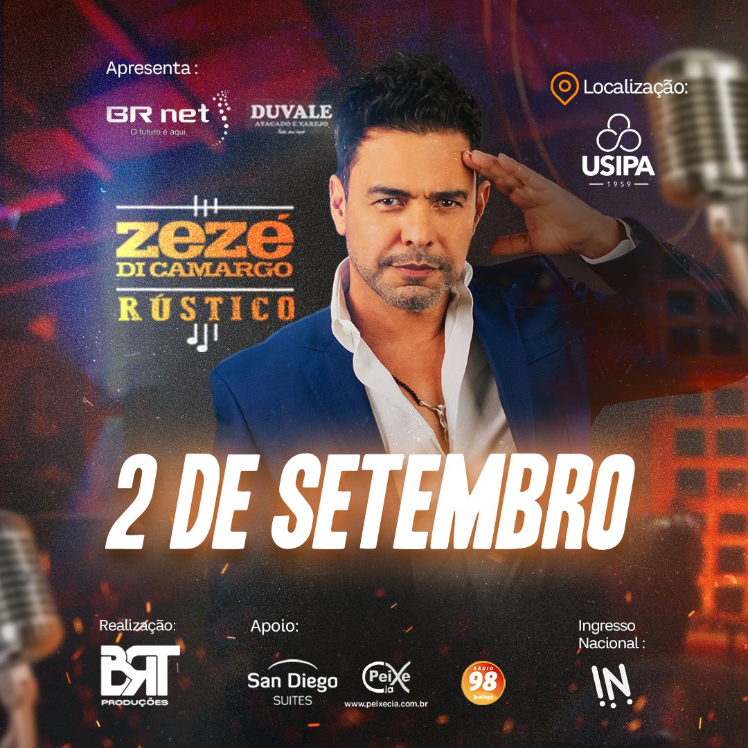 No próximo dia 2 de setembro, o cantor sertanejo Zezé Di Camargo estará no Vale do Aço para se apresentar com um novo show solo. O projeto “Rústico” traz o cantor para levar suas origens ao público de Ipatinga e região no clube Usipa.