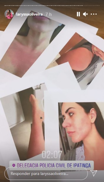 Fotos de supostas marcas da agressão foram publicadas por Laryssa, como prova de suas afirmações.