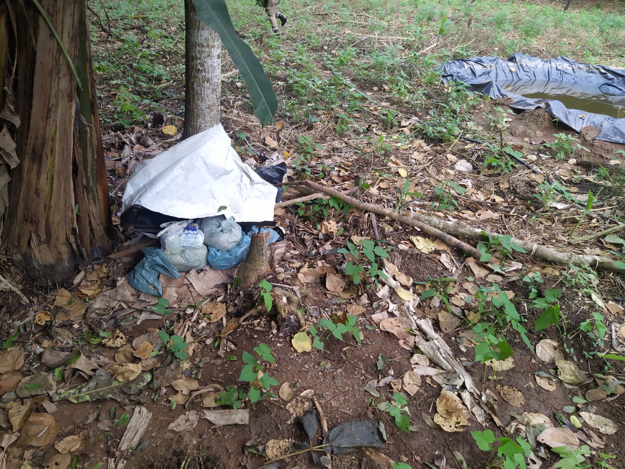 Após as informações a guarnição se deslocou ao local, que é de difícil acesso, no meio de uma mata e localizou uma enorme plantação de maconha, de aproximadamente 5 mil pés. No meio da plantação os policiais localizaram uma sacola contendo diversas sementes.