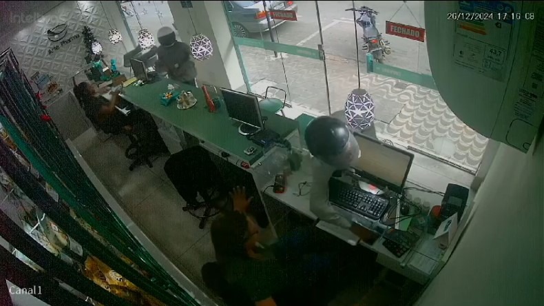 Vídeo: veja o momento em que bandidos disfarçados com uniformes invadem farmácia em Ipatinga