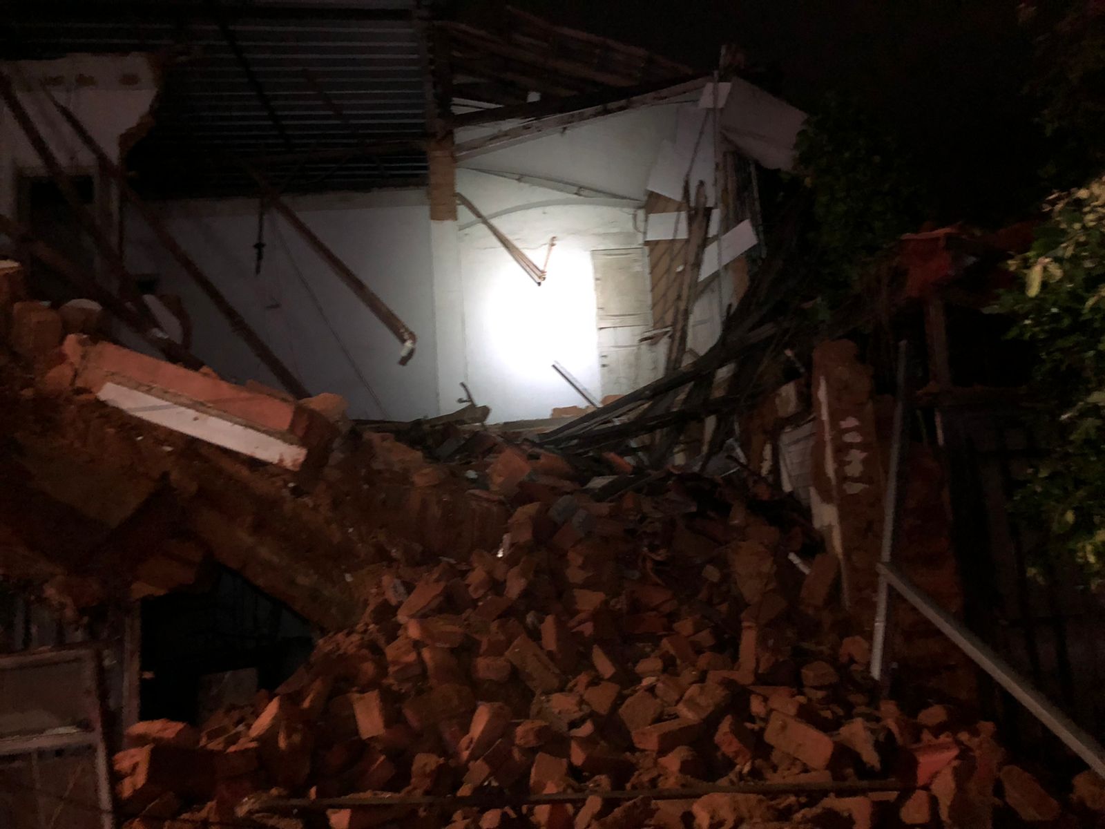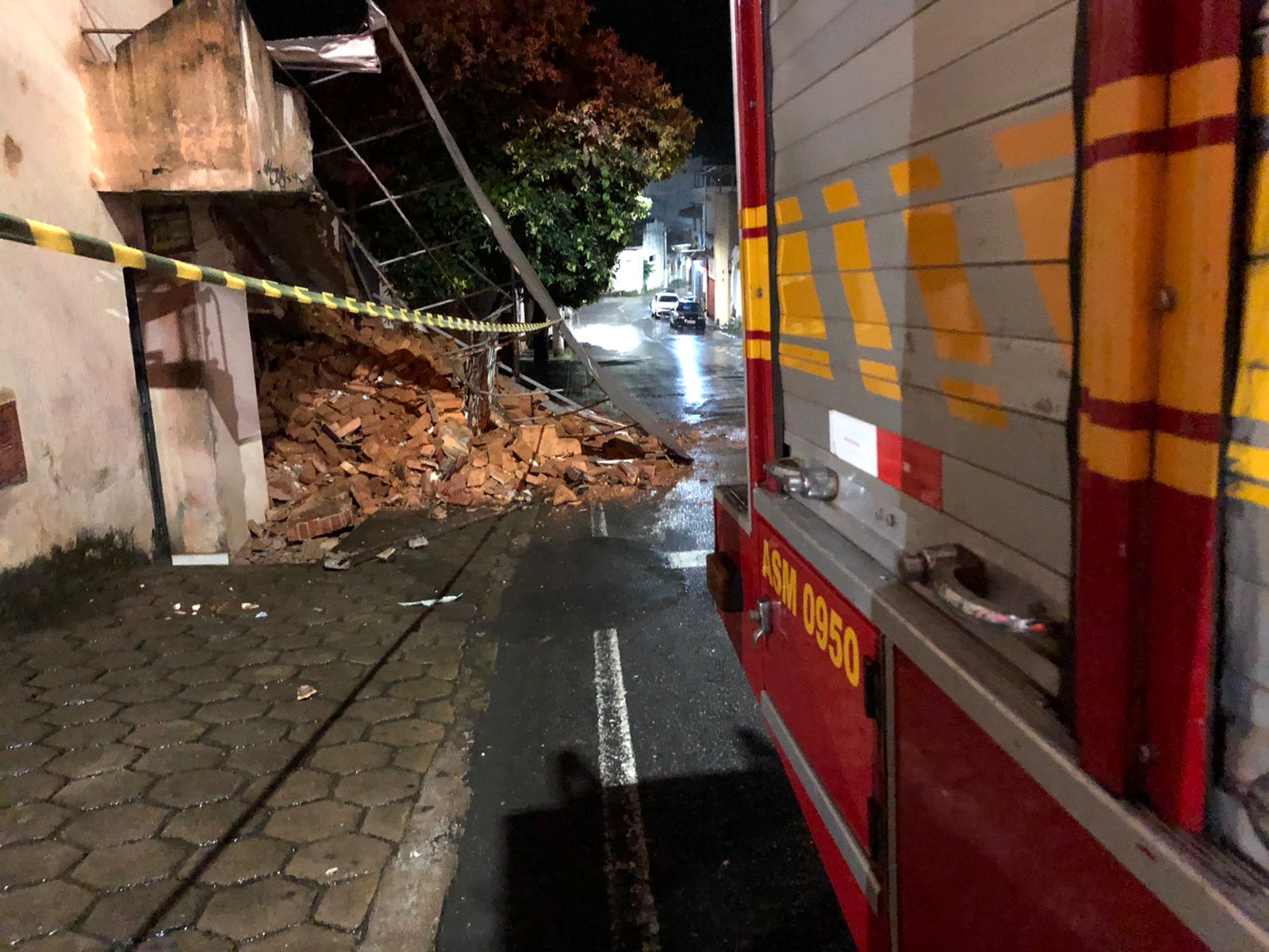 Por volta de 21h40 o Corpo de Bombeiros foi acionado para atender uma ocorrência de desabamento de residência e quando chegou no local constatou que o imóvel estava abandonado, pois havia sido condenado pela Defesa Civil do município.