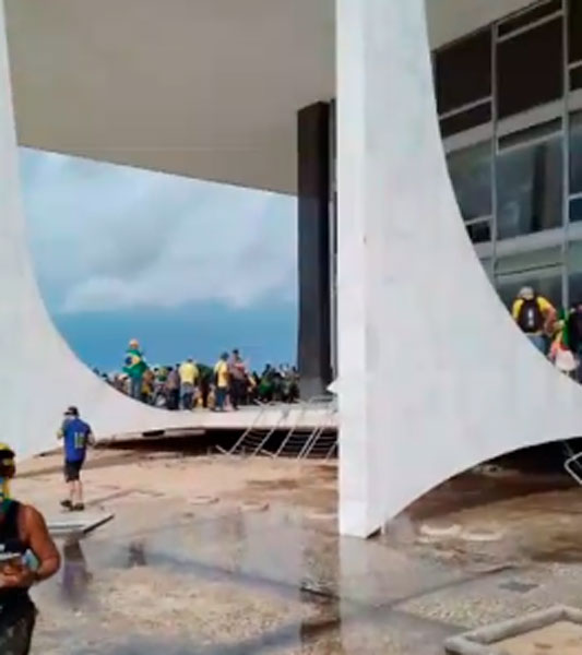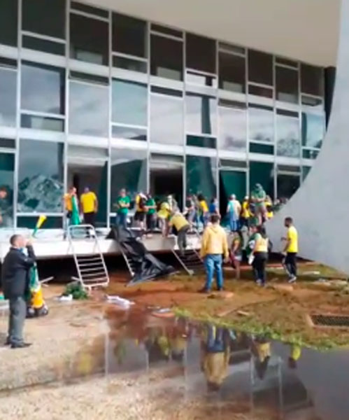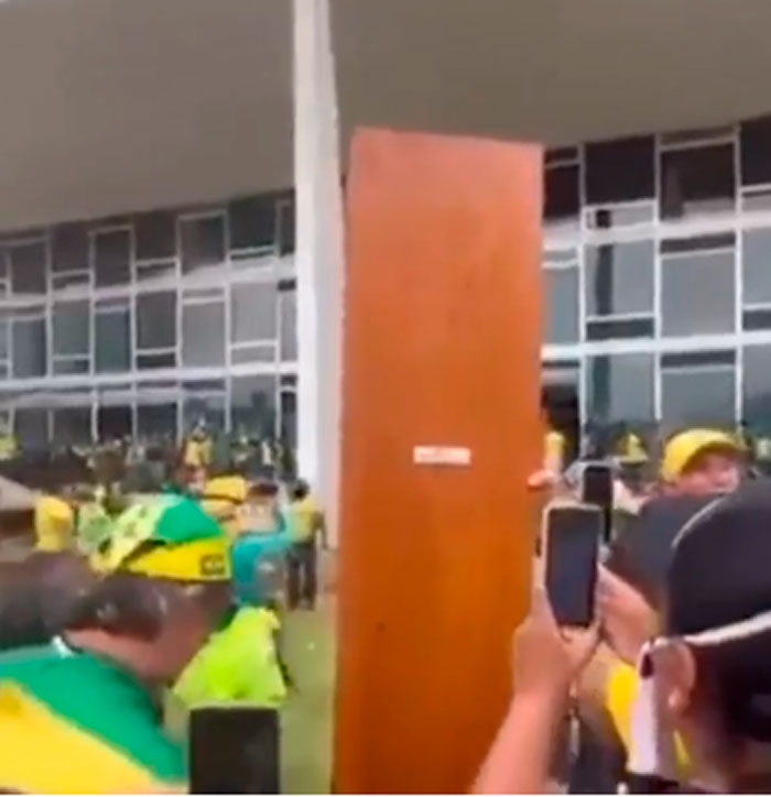 Em imagens, é possível ver o Palácio do Planalto e o Supremo Tribunal Federal (TSE) depredados, com vidros quebrados e outros danos ao patrimônio. Os manifestantes teriam furado um bloqueio policial e invadido o local.