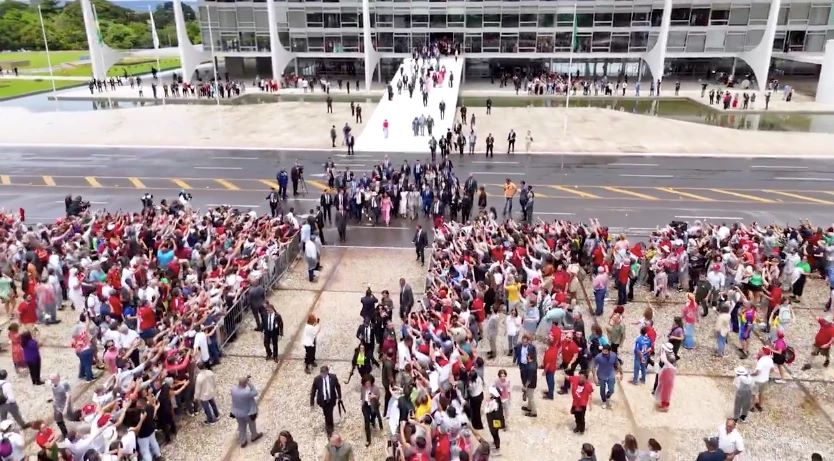 "O Palácio do Planalto foi vítima do ódio que estimula atos antidemocráticos. Nossa resposta é a união, a solidariedade e o amor", afirmou Janja.