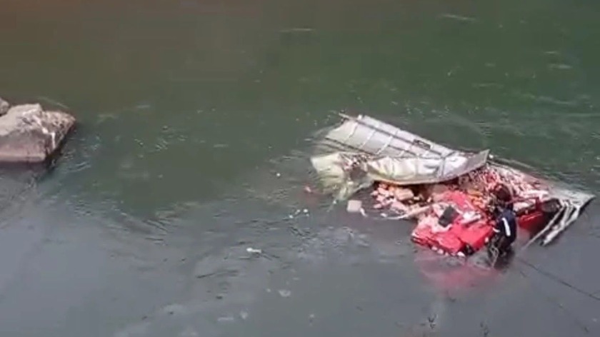 O motorista, que ficou preso nas ferragens com água até o pescoço