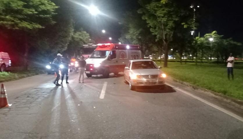 O condutor da motocicleta relatou que estava retornando do trabalho para sua residência e, ao tentar mudar de faixa, foi fechado por outro veículo. Ao retornar para sua faixa, ele se deparou com o congestionamento e, na tentativa de evitar a colisão, acabou atingindo a traseira do carro.