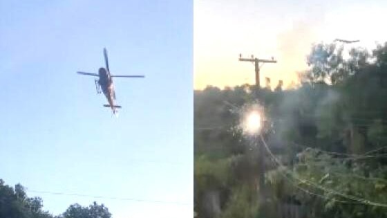 Helicóptero da Polícia Civil desvia de tiros e atinge rede elétrica no RJ