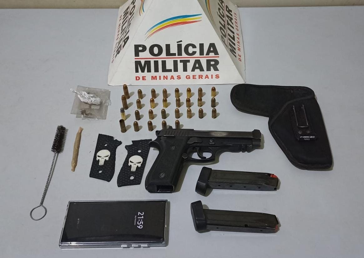 Os policiais foram até o local indicado e, na operação, realizaram diligências e buscas. Os policiais apreenderam uma pistola Taurus e 25 cartuchos calibre .380, duas empunhaduras e dois carregadores calibre.380; dois cartuchos inteiros e um deflagrado calibre .38; um cartucho calibre .32 picotado; um coldre; uma bucha, uma porção e um cigarro de maconha e um celular.