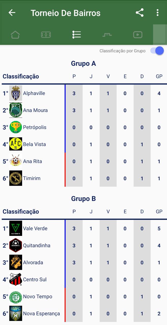 Com os resultados, a classificação apresenta as equipes do Alphaville e Ana Moura na liderança na Chave A, com 3 pontos enquanto Petrópolis, Bela Vista, Ana Rita e Timirim não pontuaram. Já na Chave B, a liderança é dividida por Vale Verde, Quitandinha e Alvorada, enquanto Centro Sul, Novo Tempo e Novo Tempo também não pontuaram.