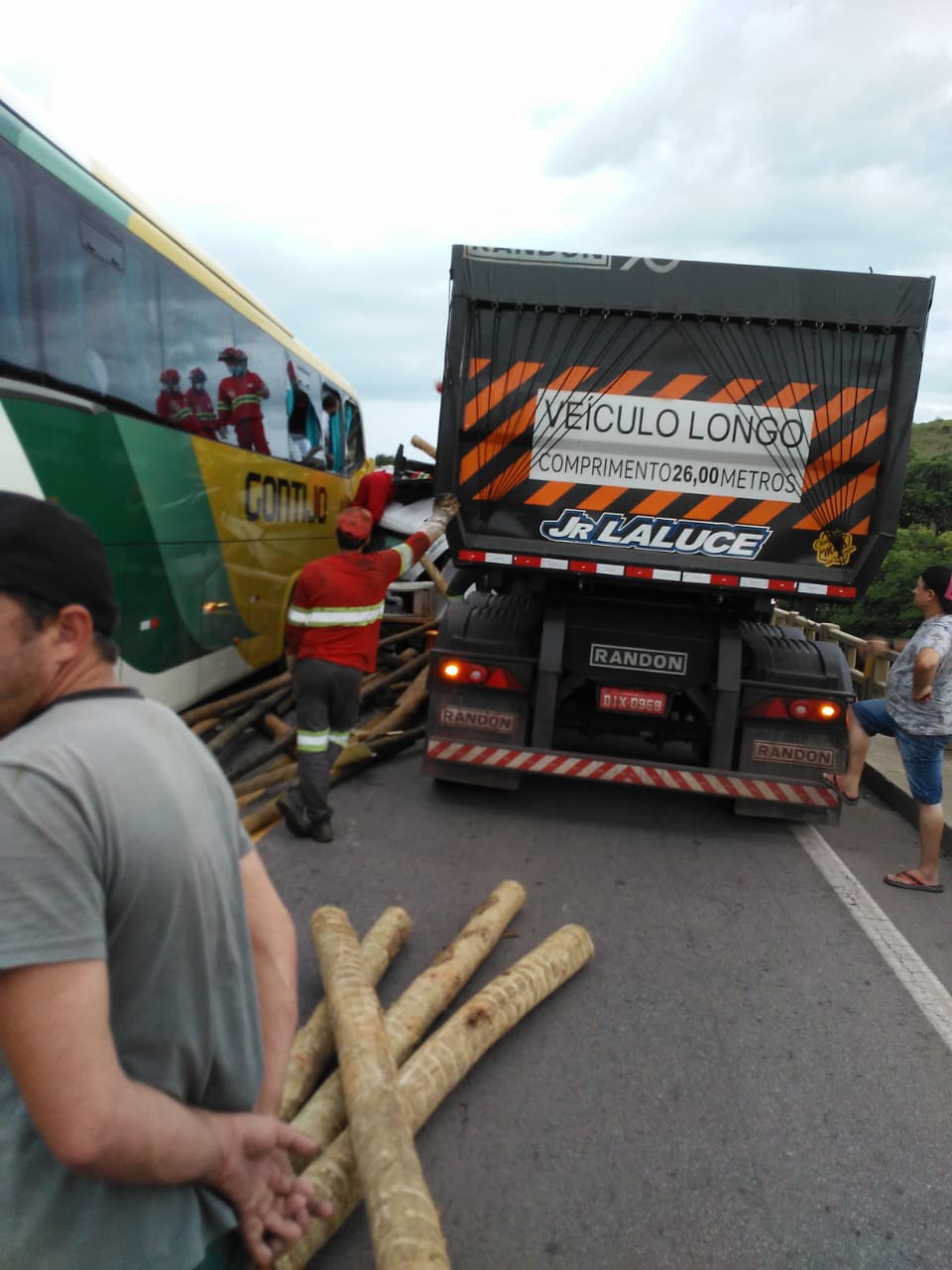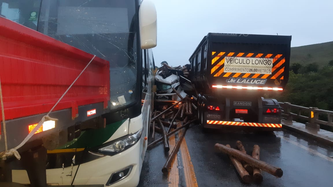 Segundo a PRF, no acidente, o motorista do caminhão, de 69 anos, não resistiu e morreu no local. O motorista do ônibus sofreu uma luxação no pé e recusou atendimento médico. O ônibus transportava 19 passageiros e nenhum deles sofreu ferimentos. Pelas imagens é possível ver que a cabine do caminhão, que bateu na traseira do ônibus, ficou completamente destruída. Um dos veículos envolvidos estava carregando uma carga de toras de madeira e ocorreu derramamento da carga.