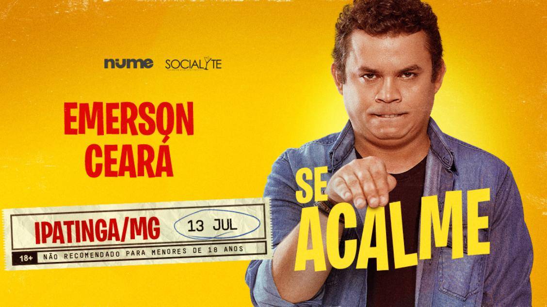O renomado humorista Emerson Ceará chega a Ipatinga neste fim de semana para apresentar seu mais recente show solo, "Se Acalme". Conhecido por abordar temas cotidianos e situações que todos enfrentamos, Ceará promete arrancar risadas ao falar sobre falta de dinheiro, rolês ruins e pessoas esquisitas. Este será o sétimo show solo do comediante, que já percorreu os mais prestigiados palcos da comédia brasileira.
