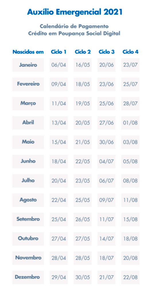 Veja escala de pagamento nas contas sociais de cada parcela:
