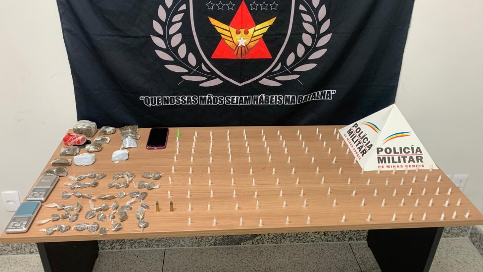 Suspeito de 18 anos foi detido no bairro Aparecida do Norte com mais de 180 porções de drogas, balanças de precisão e materiais para embalo. Polícia investiga o caso.