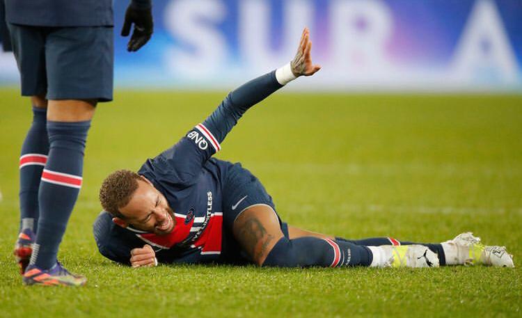Neymar, que sofreu graves contusões no pé em 2018 e 2019, chorou ao deixar o campo nos acréscimos, após uma entrada de Thiago Mendes, do Lyon, que recebeu cartão vermelho direto.
