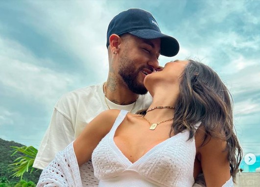 Neymar e Bruna, juntos desde agosto de 2021. O casal postou em suas redes sociais fotos em que aparecem abraçados e felizes, com a mão do jogador sobre a barriga de Bruna, já evidenciando a gestação.