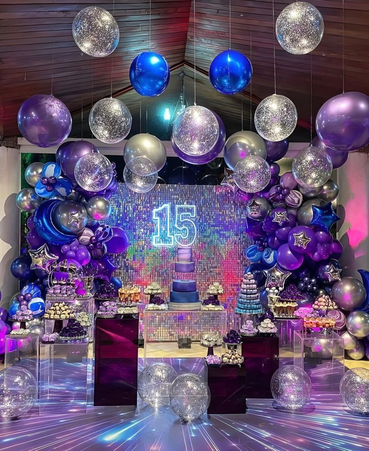 Contrariando a tradição de festas luxuosas, as comemorações mais simples têm ganhado destaque. O Pinterest revelou um crescimento impressionante nas buscas por “festa 15 anos simples” (6930%) e “decoração 15 simples” (2352%). As mesas de apoio menores e os painéis de fundo estão substituindo as tradicionais mesas cheias de flores e bolos de andares. Arranjos de balões e escritos em LED são os principais elementos decorativos, proporcionando um visual moderno e elegante.