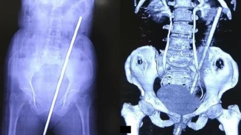 O incidente ocorreu quando a mulher escorregou em um campo próximo à sua casa e caiu sobre a barra de metal, que estava parcialmente enterrada no solo