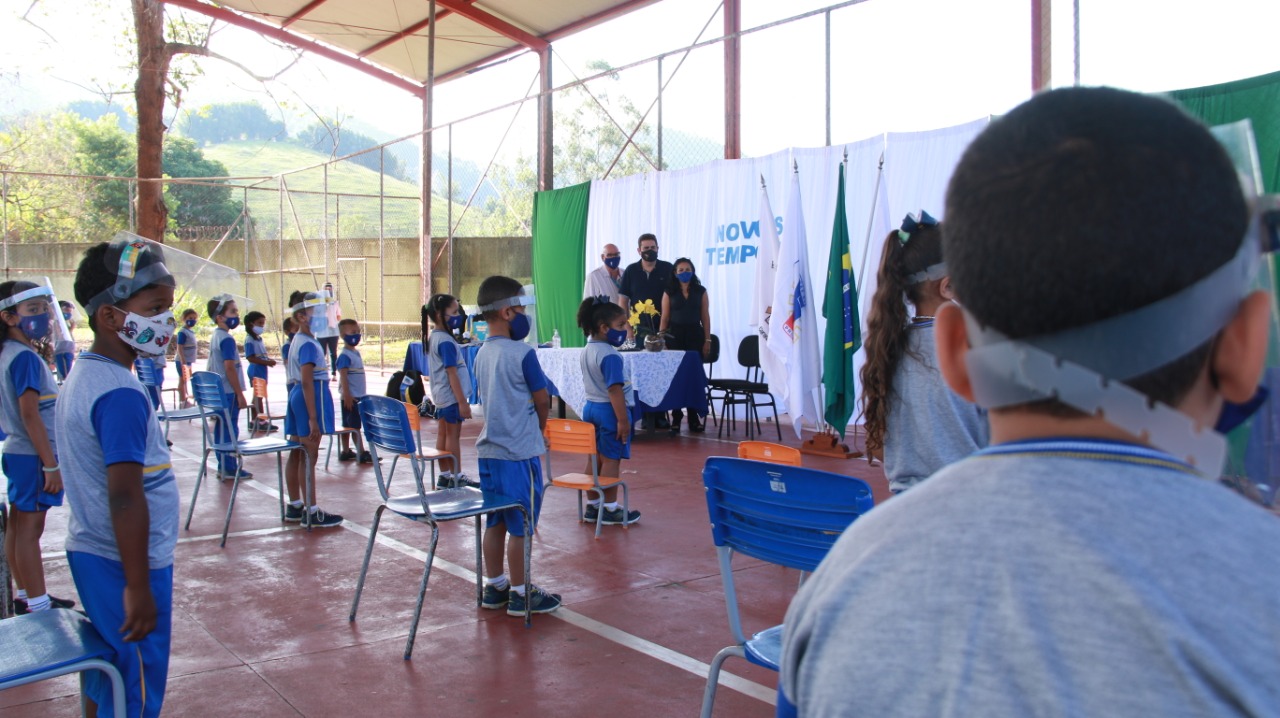 As primeiras peças foram entregues aos alunos da Escola Municipal Maria das Graças Ferreira, no bairro Córrego Alto, em cerimônia com a presença do prefeito, Dr. Marcos Vinicius e do secretário de Governança Educacional e de Cultura, Carlos Alberto Serra Negra.