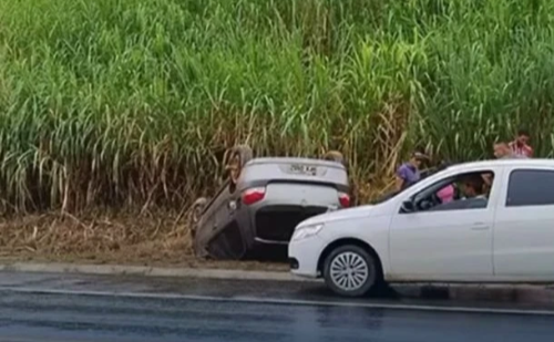 Fiat Palio ficou com as rodas para cima após acidente em curva entre Ubaporanga e Caratinga