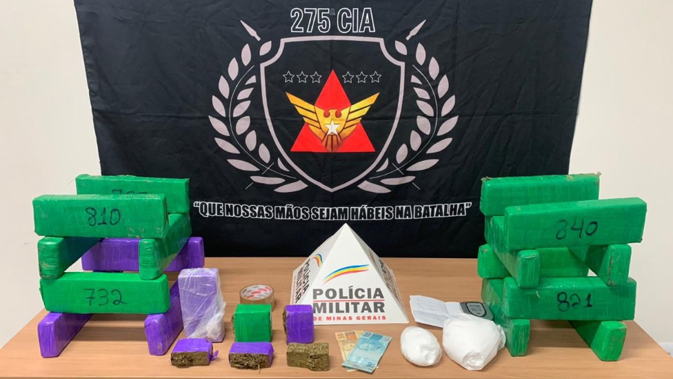 Ao revistar o veículo, os policiais encontraram 17 barras e cinco tabletes de maconha, além de duas porções de cocaína.