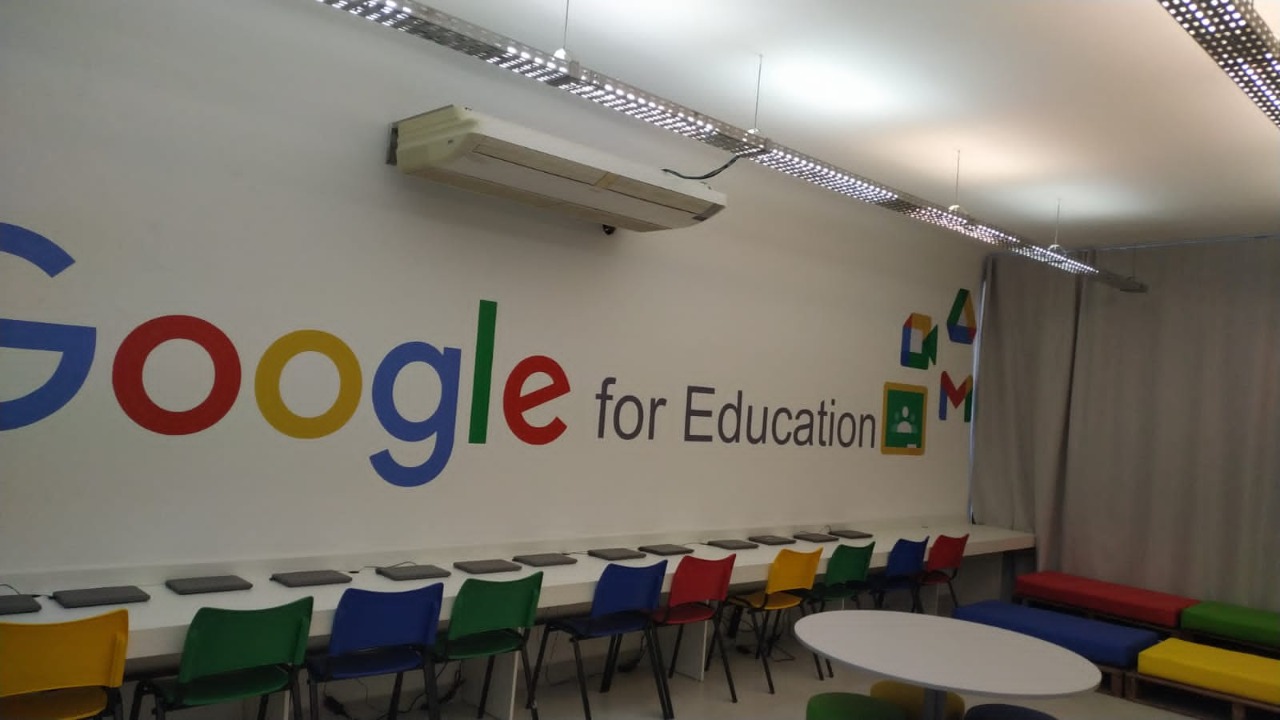 O projeto inaugural da sala Google for Education foi elaborado a partir de uma proposta para reformular o laboratório de informática do educandário. “Foi empregada uma arquitetura com design moderno, colorido e estimulante, bem revolucionária em comparação com as salas de aula convencionais”, detalha a secretária municipal de Educação, Patrícia Avelar.