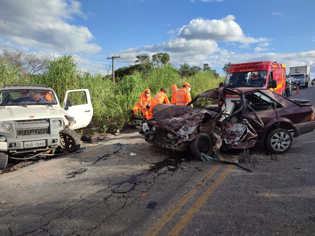 O Corpo de Bombeiros foi acionado para atender a ocorrência e compareceu ao local, no km 48 da rodovia MG-424, próximo a Embrapa, no trecho entre Sete Lagoas e Prudente de Morais. A colisão ocorreu por volta das 16h.