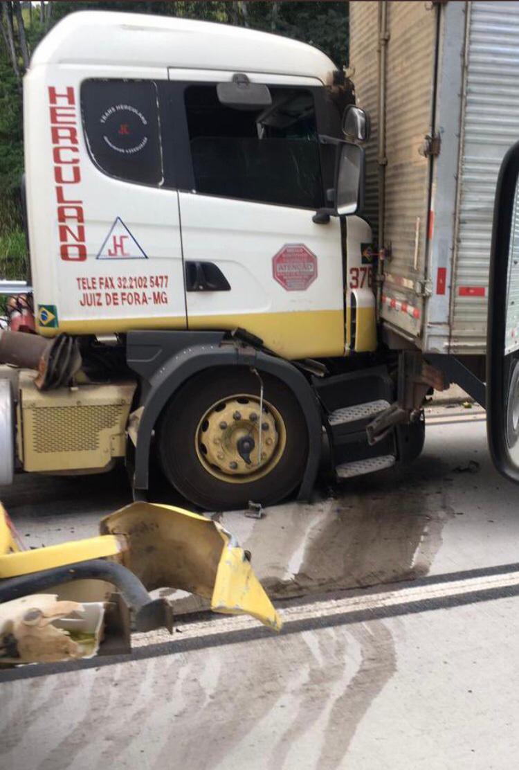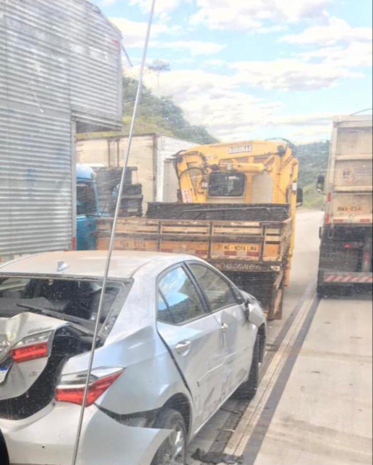 No fim da tarde dessa quinta-feira (22), um engavetamento envolvendo ao menos cinco caminhões e um veículo de passeio deixou o trânsito ainda mais lento no Km 297 da rodovia BR-381 em Antônio Dias-MG. A via já estava funcionando no sistema “pare e siga”, devido a um deslizamento de terra que ocorreu na noite da última quarta-feira (21).