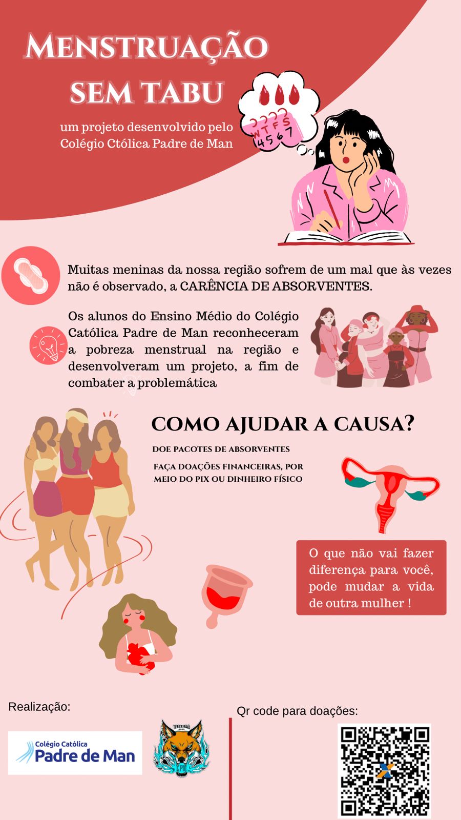 As doações para o projeto “Menstruação sem tabu” podem ser feitas por meio de transferência de qualquer valor por PIX. A chave é (31) 99692-5926. Para doar os pacotes de absorventes, o ponto de coleta é no Colégio Padre de Man. As arrecadações começaram em 2019. O recorde de maior quantidade de doações foi em 2022: 3.820 unidades.