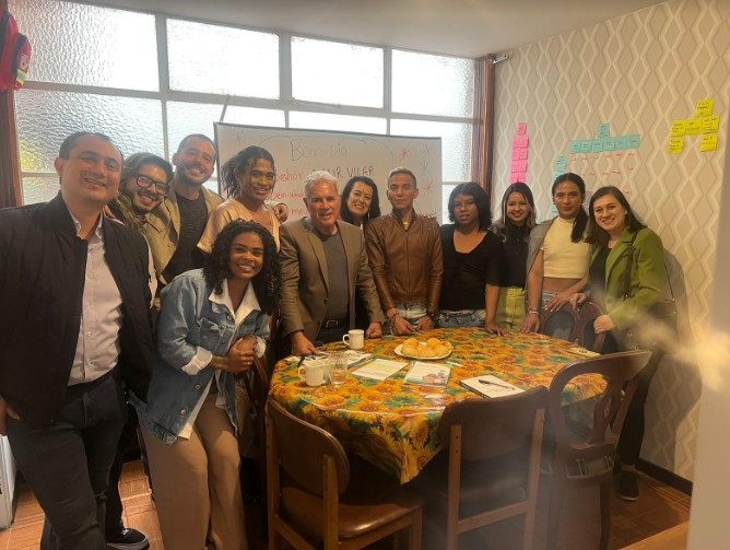 O Presidente do Grupo Cartão de TODOS, Altair Vilar e sua esposa Mara Vilar, Vice-Presidente Social da empresa, visitaram na última sexta-feira (24), a “Casa Feliz”, um espaço de acolhimento na capital colombiana que tem o propósito de oferecer não só abrigo, mas também capacitação profissional e educacional como forma de apoio aos refugiados venezuelanos integrantes da comunidade LGBTQIAPN+, assim como à população local da Colômbia afetada pelos ainda inúmeros casos de conflitos armados pelo país. Inaugurada, oficialmente, em 20 de junho, no Dia Mundial do Refugiado — data criada pela Organização das Nações Unidas (ONU) — a Casa Feliz é uma iniciativa da organização não governamental (ONG) brasileira Planeta de TODOS, braço social mantido pelo Grupo Cartão de TODOS.