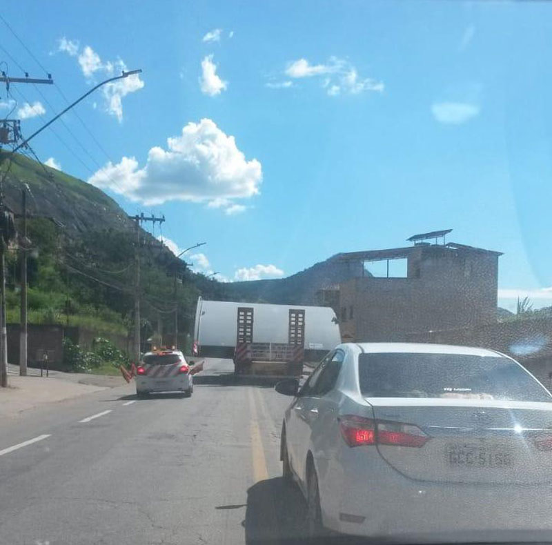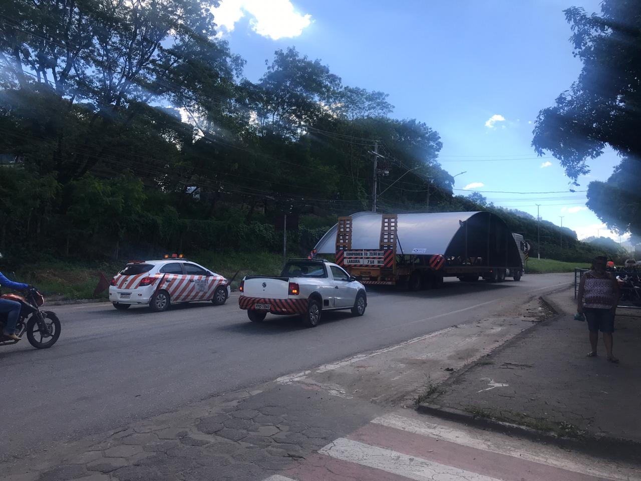 Segundo informações da assessoria da empresa, a peça que está sendo transportada é uma das partes de um tanque para filtragem de rejeitos e está sendo transportada para Itabira, na região central de Minas Gerais.