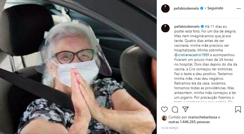Neste sábado (27), morreu Ana Maria, mãe do Padre Fábio de Melo. Ela estava internada em um hospital, em decorrência da Covid-19, e chegou a ser intubada, mas não resistiu.