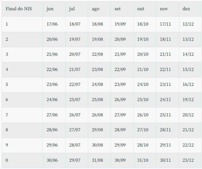 O benefício sempre é pago nos últimos dez dias úteis do mês. Veja a escala de pagamento de setembro: