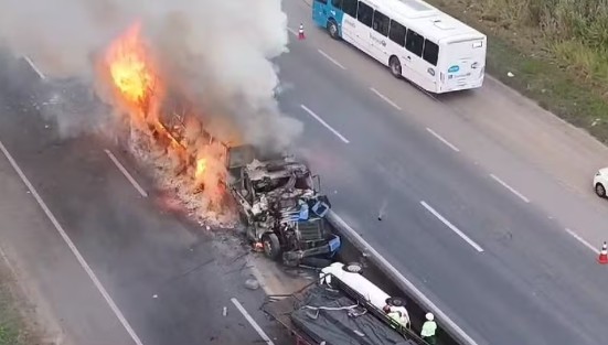 O impacto da batida resultou em um incêndio na carreta, exigindo a atuação imediata do Corpo de Bombeiros, que já está no local combatendo as chamas. Com o acidente, o tráfego foi totalmente interrompido no sentido Norte, enquanto no sentido Sul, apenas o acostamento está liberado, já que duas faixas de rolamento foram bloqueadas.