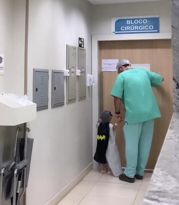 Um vídeo viralizou nas redes sociais nesta semana. O médico otorrinolaringologista Leandro Brandão Guimarães, de Divinópolis, região Centro-Oeste de Minas Gerais, levando crianças vestidas de super-heróis para a sala de cirurgia.
