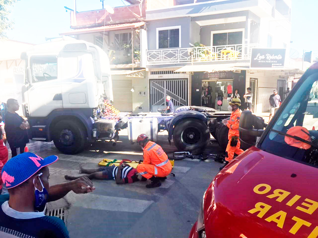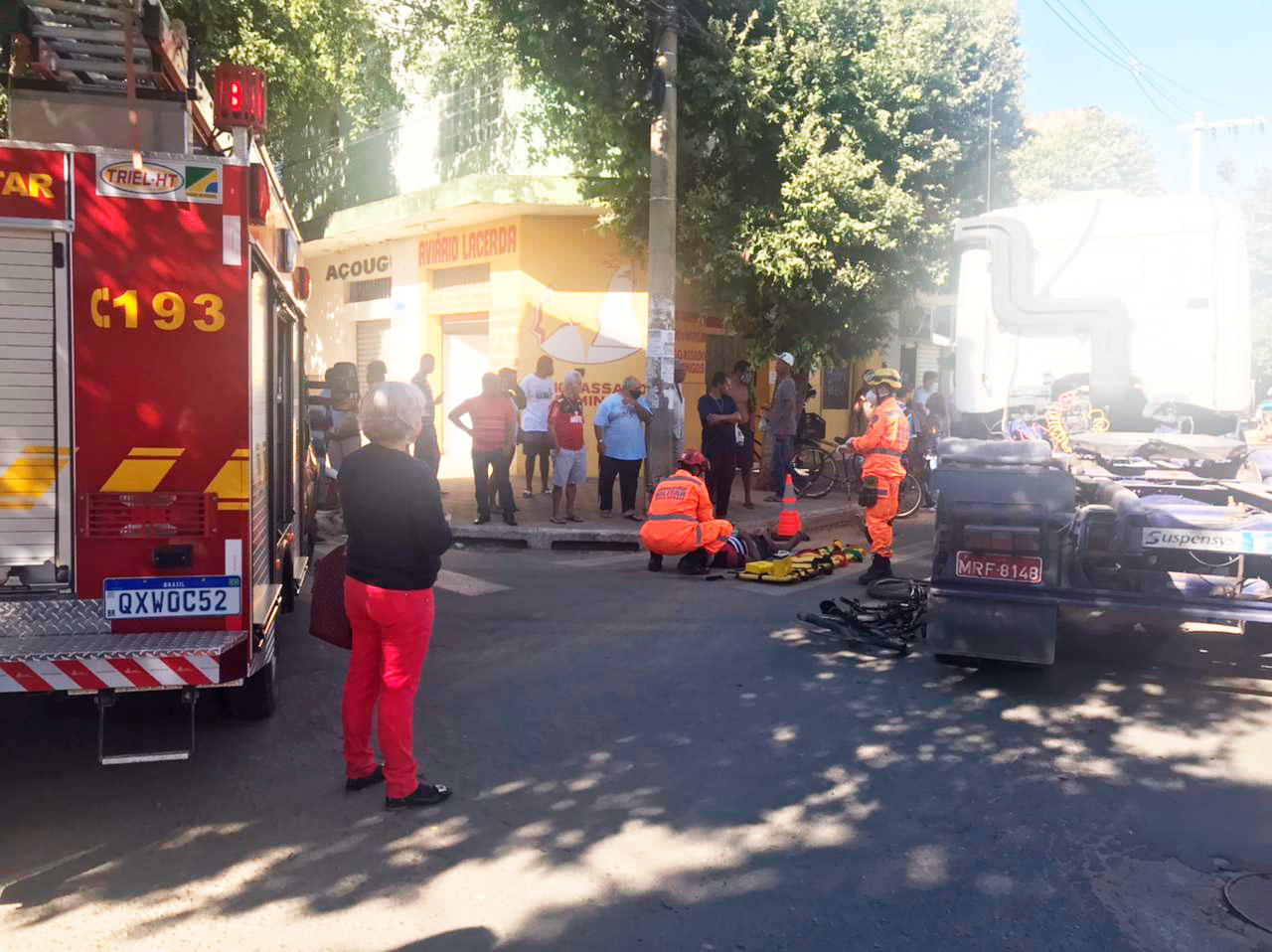 Na manhã desta terça-feira (29), um ciclista foi atropelado por um caminhão e apresentava suspeita de fratura na perna direita. Ele foi socorrido por uma equipe do Corpo de Bombeiros e encaminhado ao hospital.