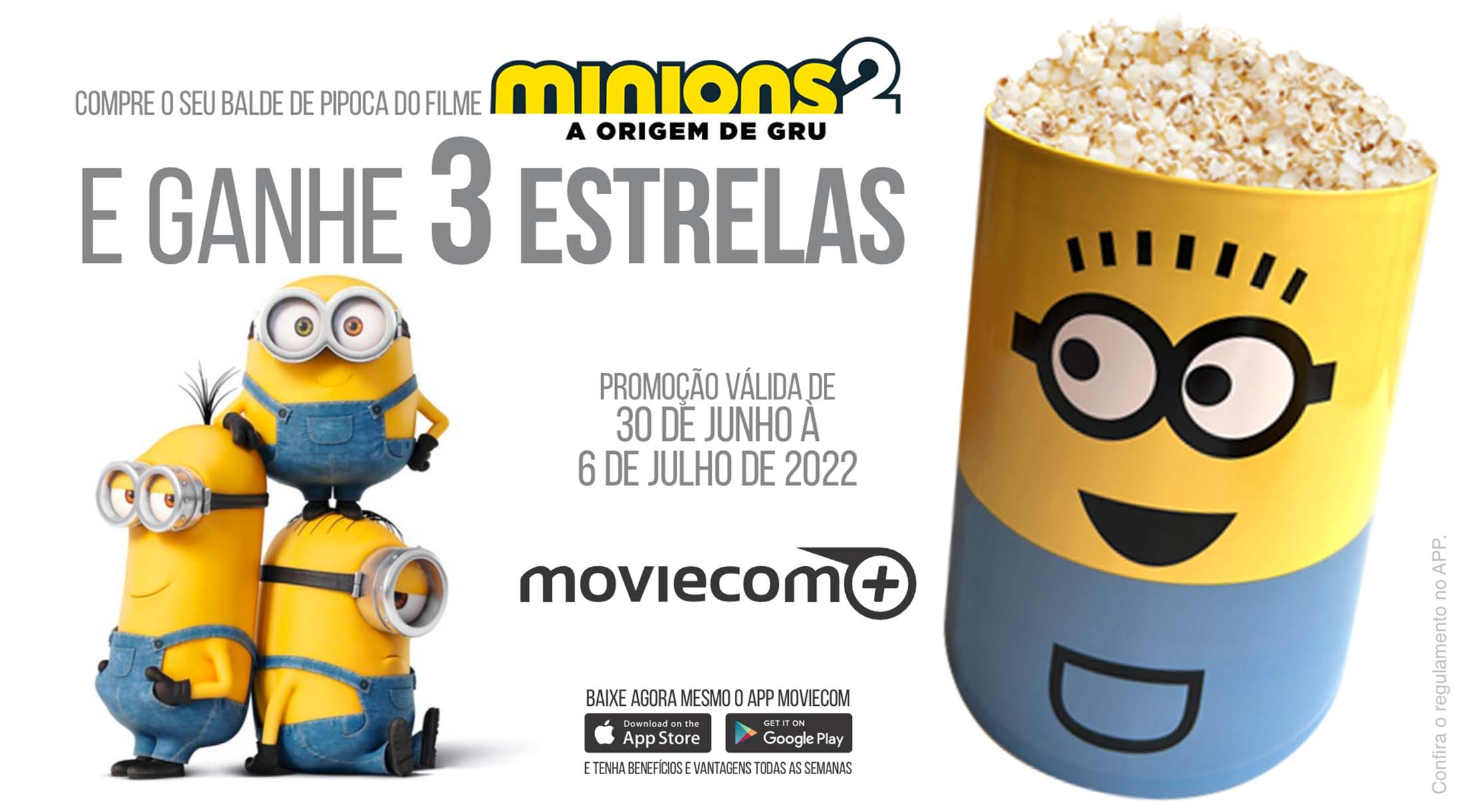 Os clientes da promoção do aplicativo terão direitos a brindes dos Minions. Uma novidade também é o balde de pipocas personalizado para os amantes dos bichinhos amarelos.