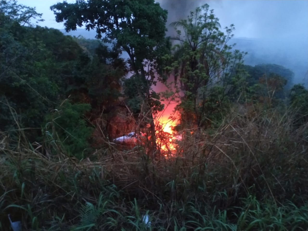 O avião de pequeno porte tentou pousar na fazenda São Pedro e acabou parando dentro da mata. Os militares dos Bombeiros foram acionados para conter as chamas.